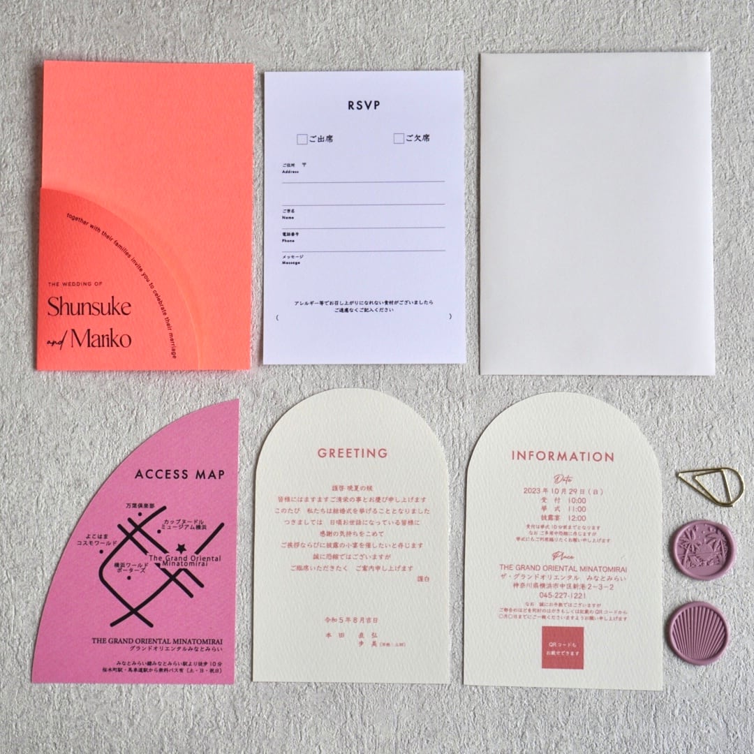 #料金別納郵便 #サンキュータグ #席札 #結婚式 #招待状 #席次表 #暖色系 #新生活 #ウェディング #2023春婚 #2023夏婚 #アーチ #蛍光 #フラミンゴカラー #ピンク
